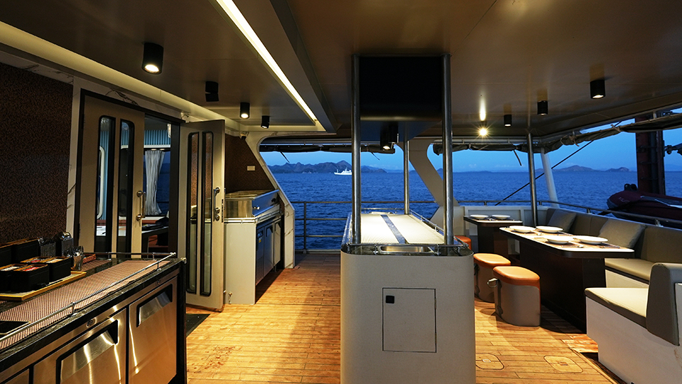 Built with a strong aluminum-steel hull, this 38-meter motor yacht (8-meter beam) is designed for both safety and speed. Powered by twin 1000HP engines, Panunee Premier cruises swiftly and smoothly across Indonesia’s finest dive destinations.
